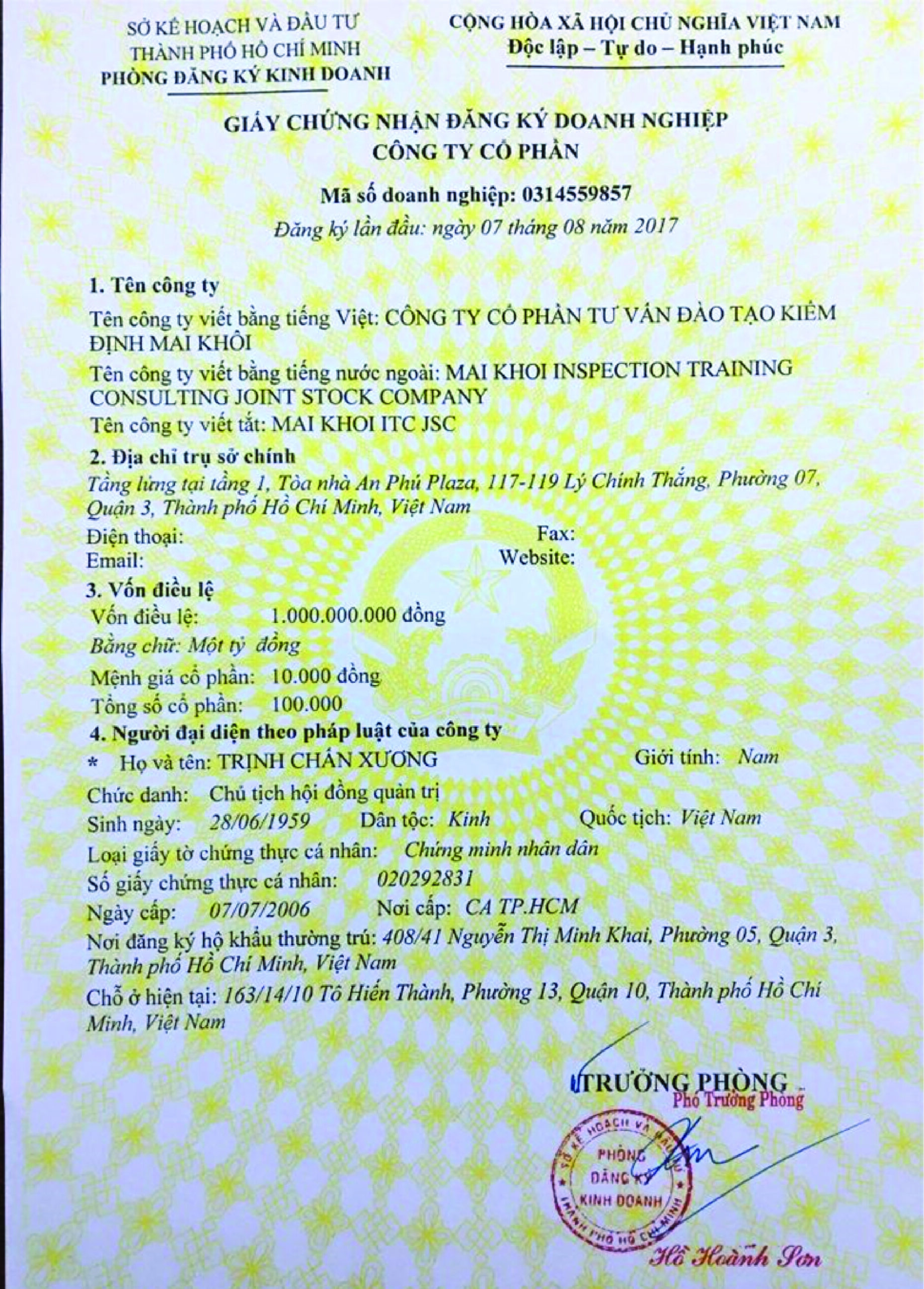 CÔNG TY CỔ PHẦN TƯ VẤN ĐÀO TẠO KIỂM ĐỊNH MAI KHÔI